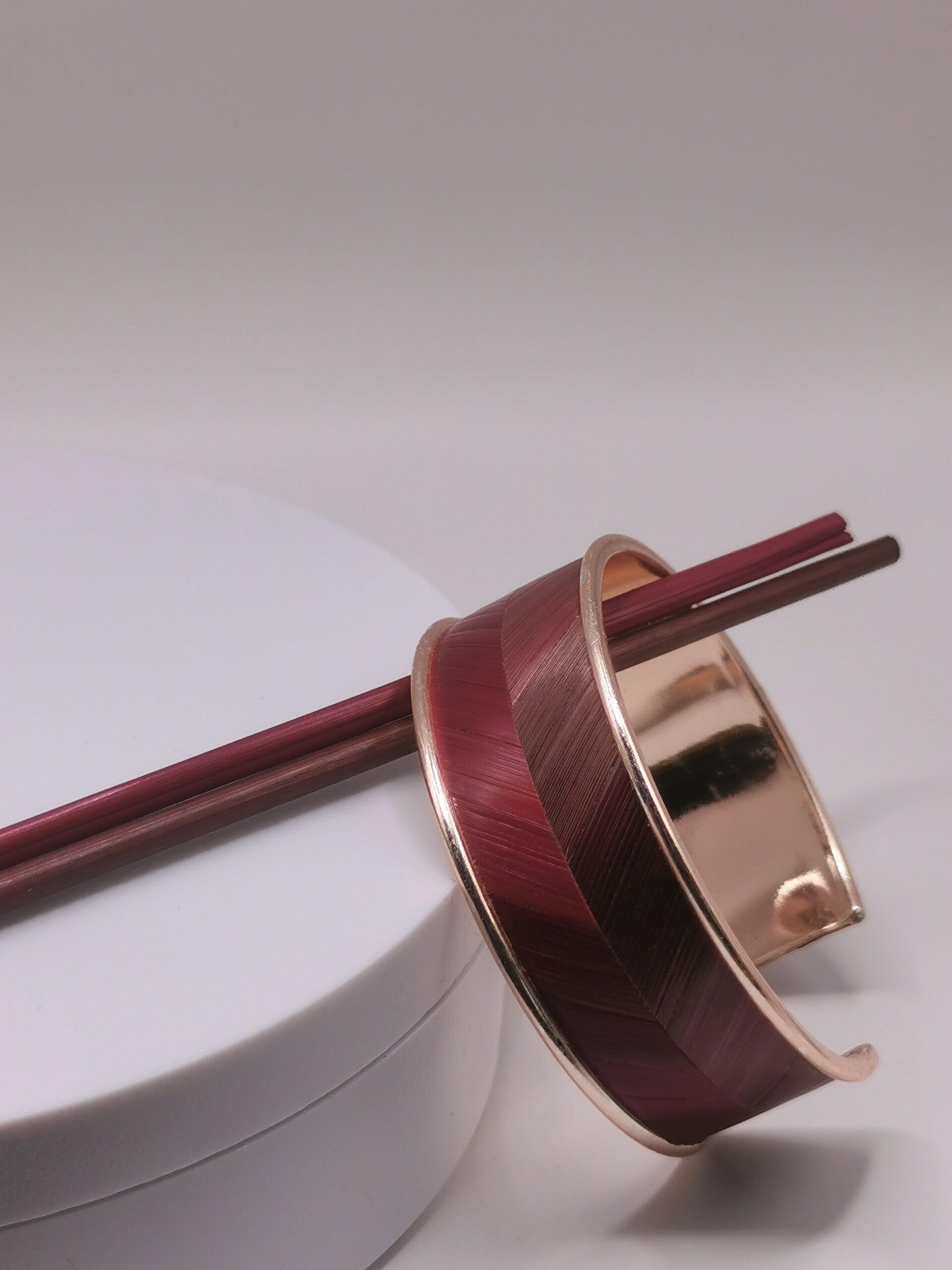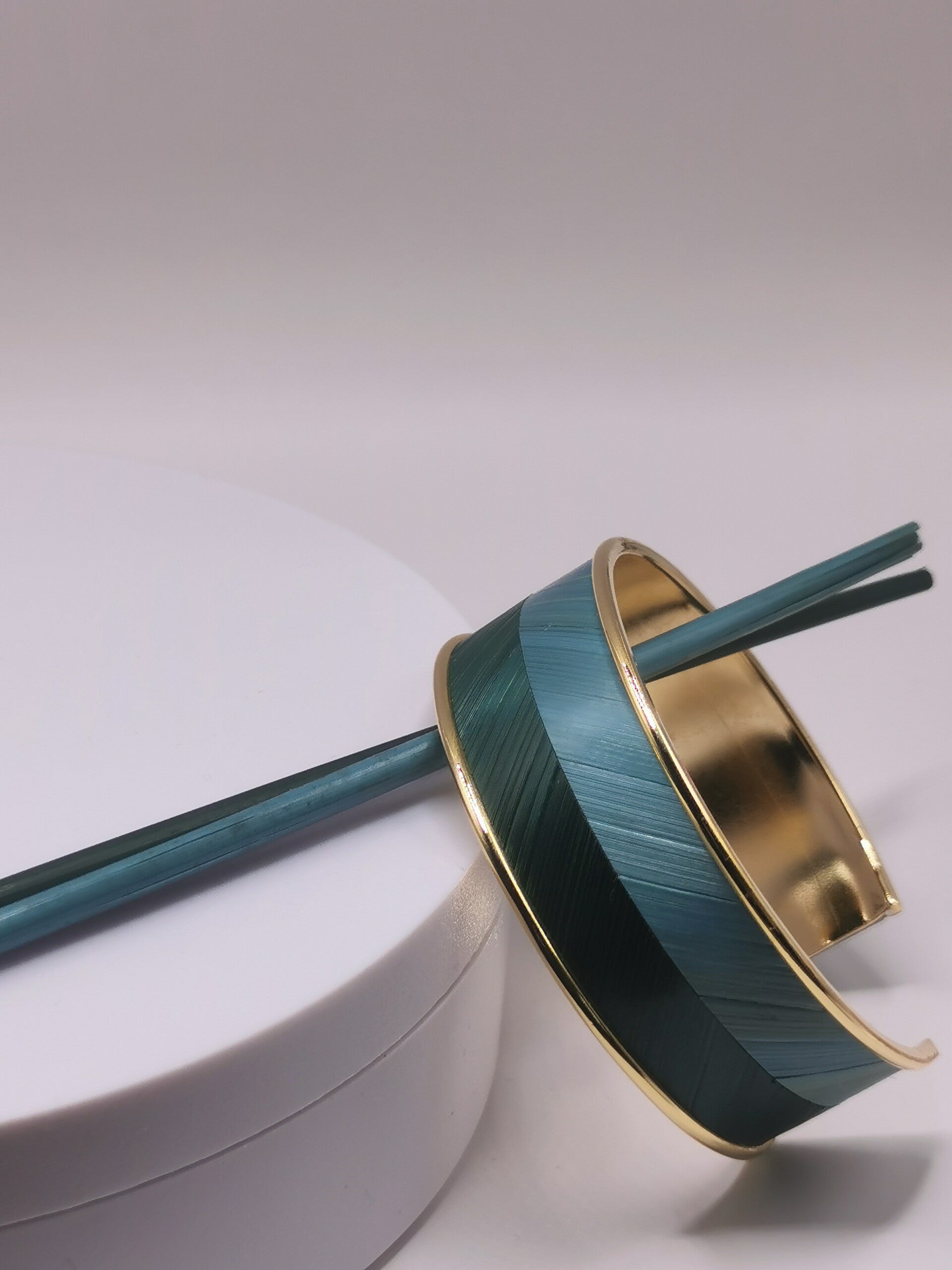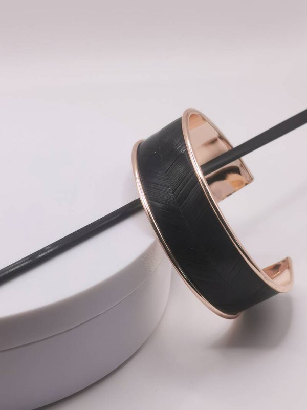 Bracelet manchette laiton - décor en chevron marqueterie de paille - taille unique largeur 20mm