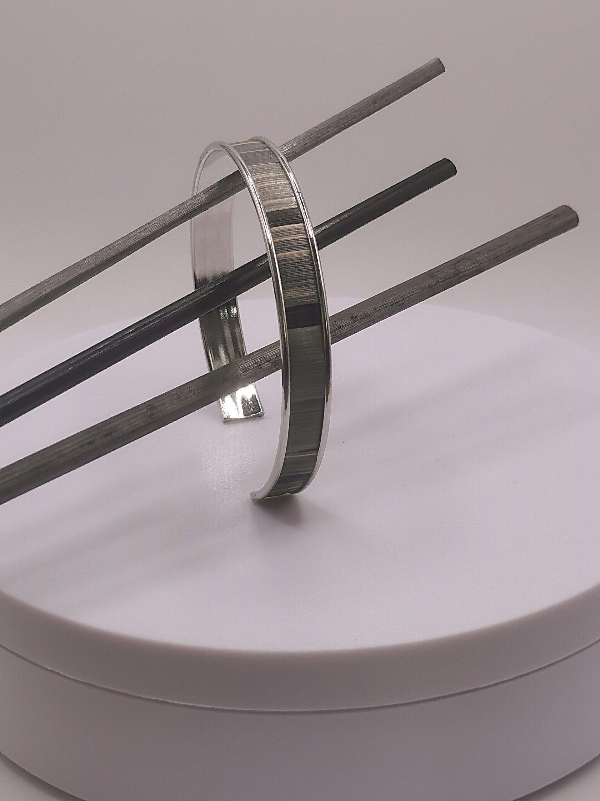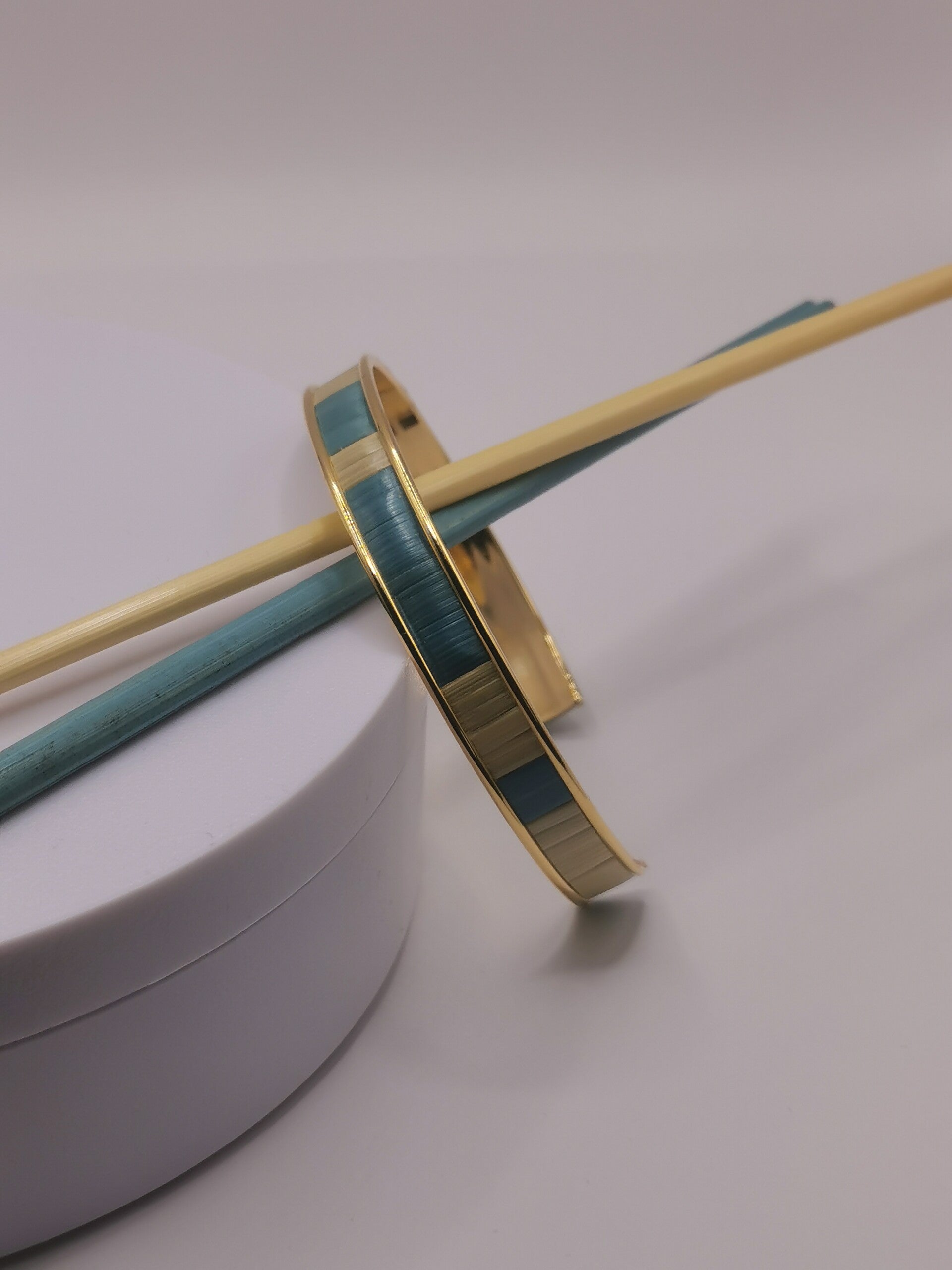 Bracelet manchette plaqué or 24 carats avec décor droit en marqueterie de paille taille unique largeur 8mm