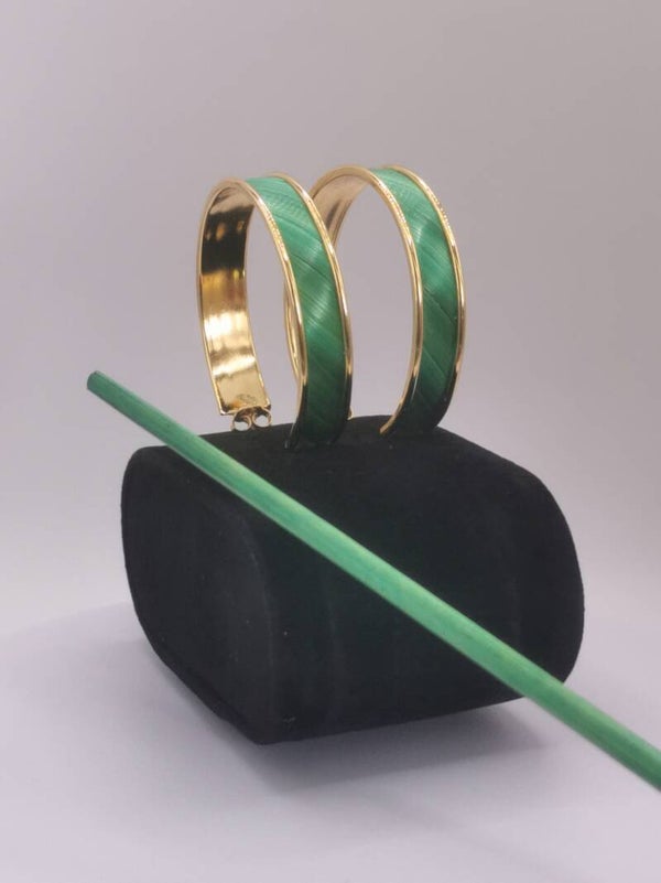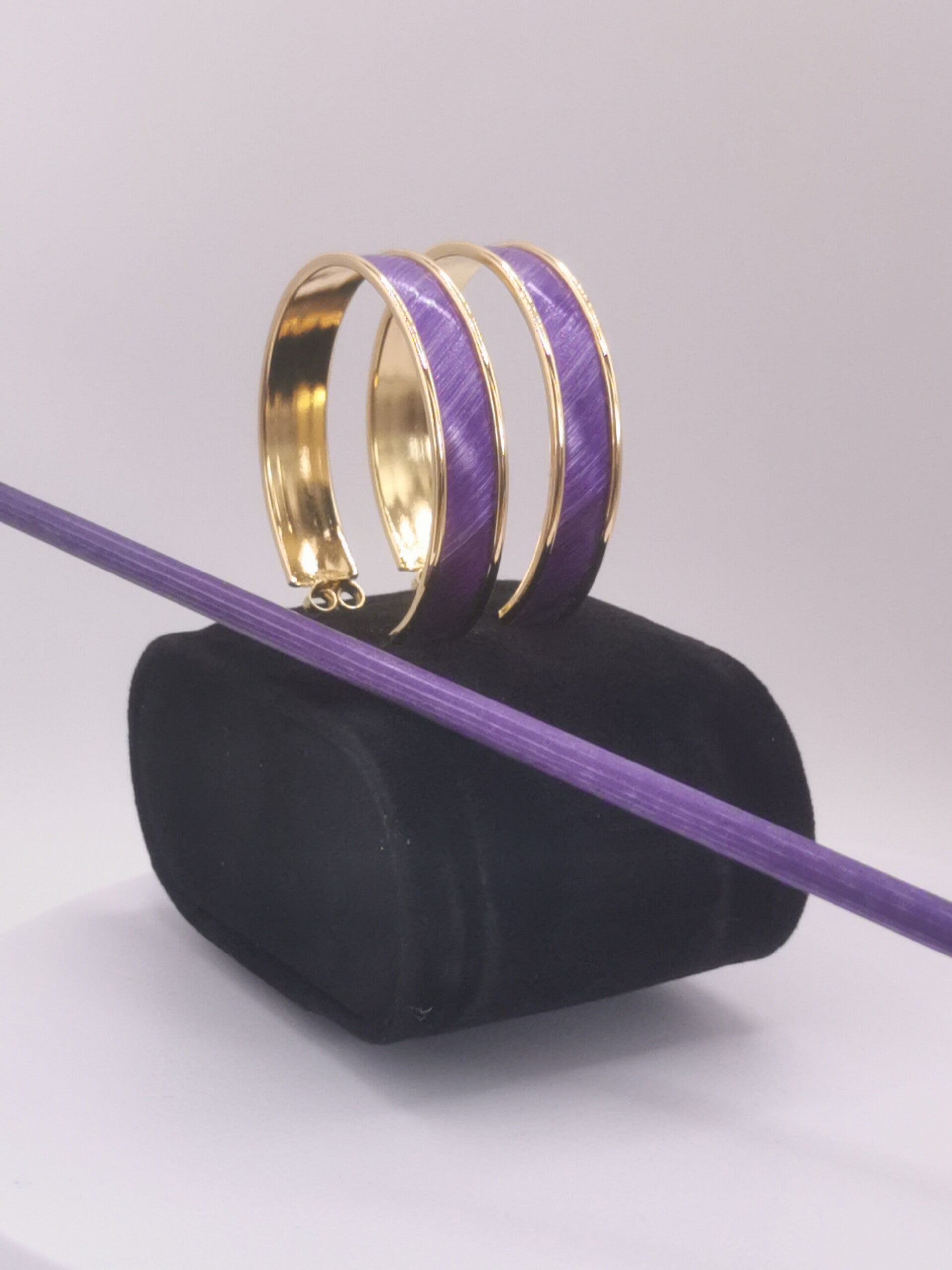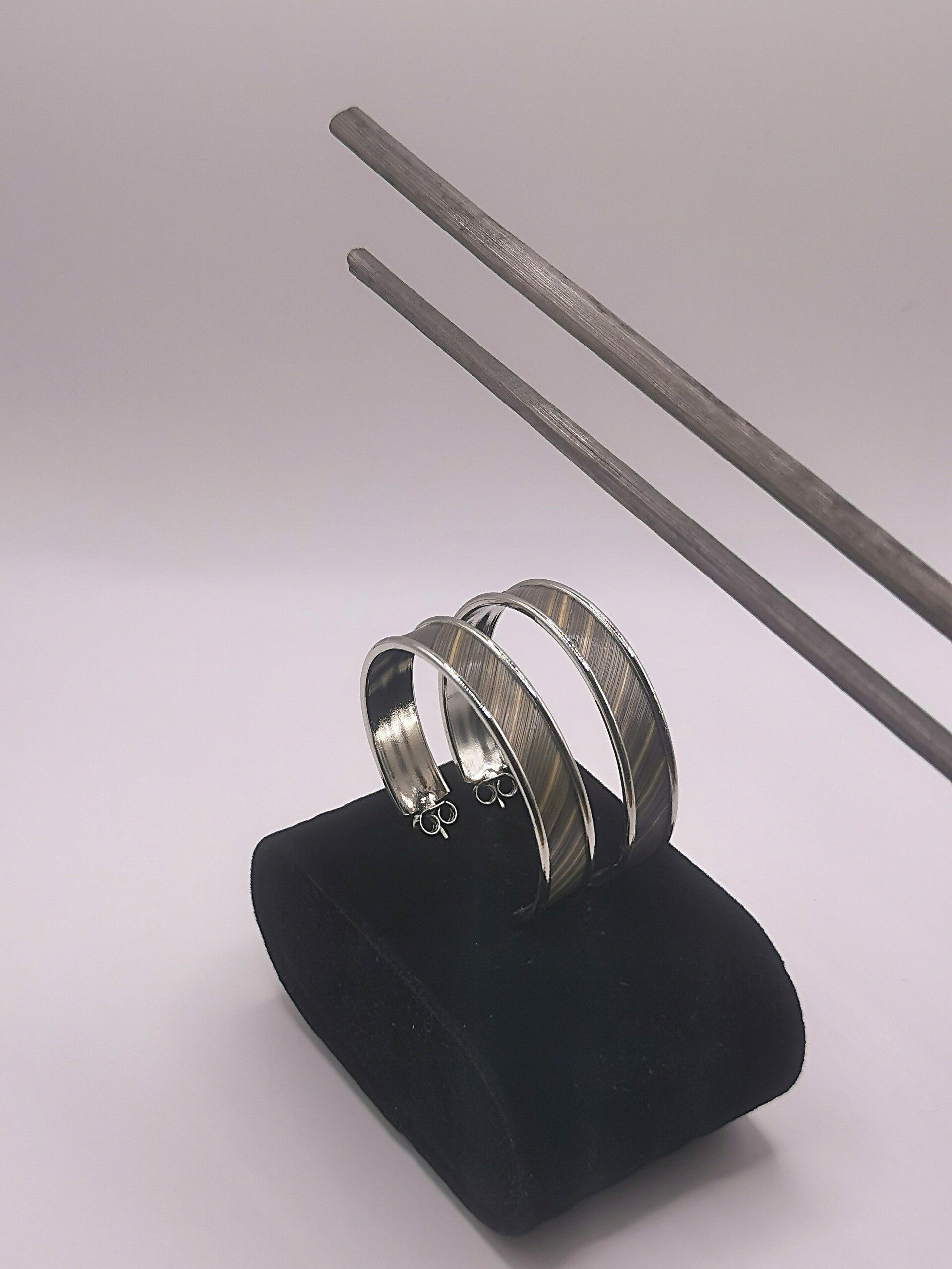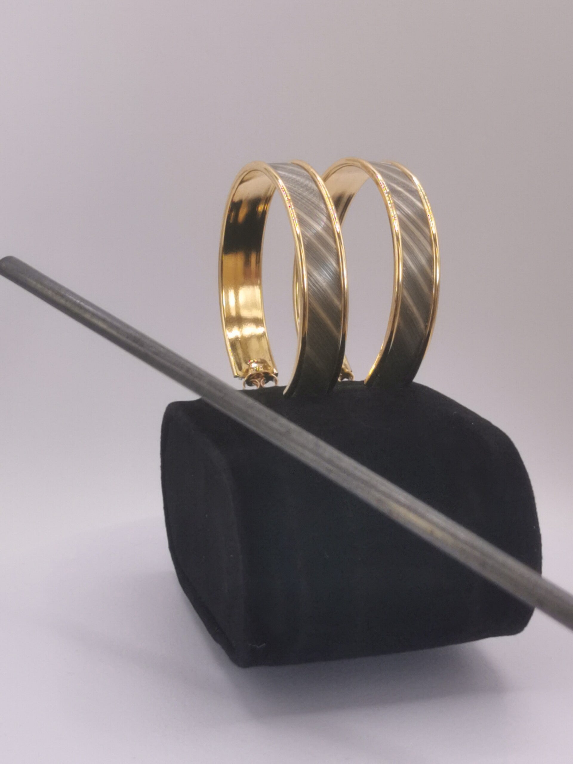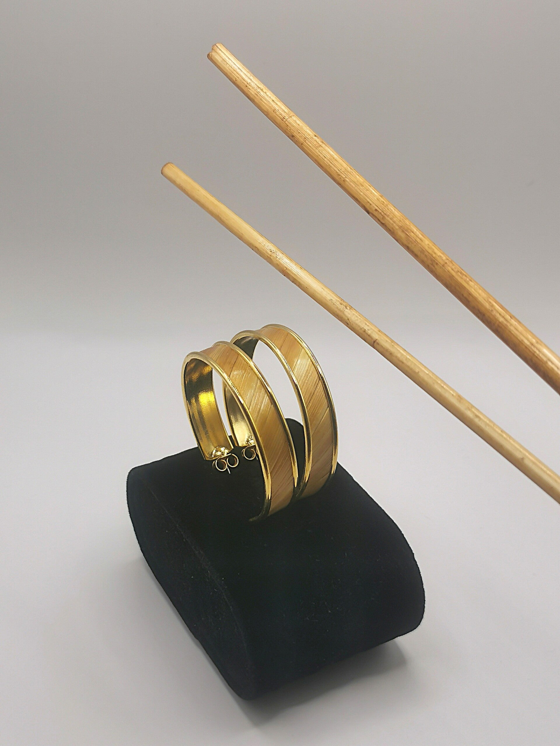 Boucles d'oreilles plaqué Or 24 carats et plaqué Rodhium avec décor uni en marqueterie de paille taille unique largeur 8mm Diamètre 40mm