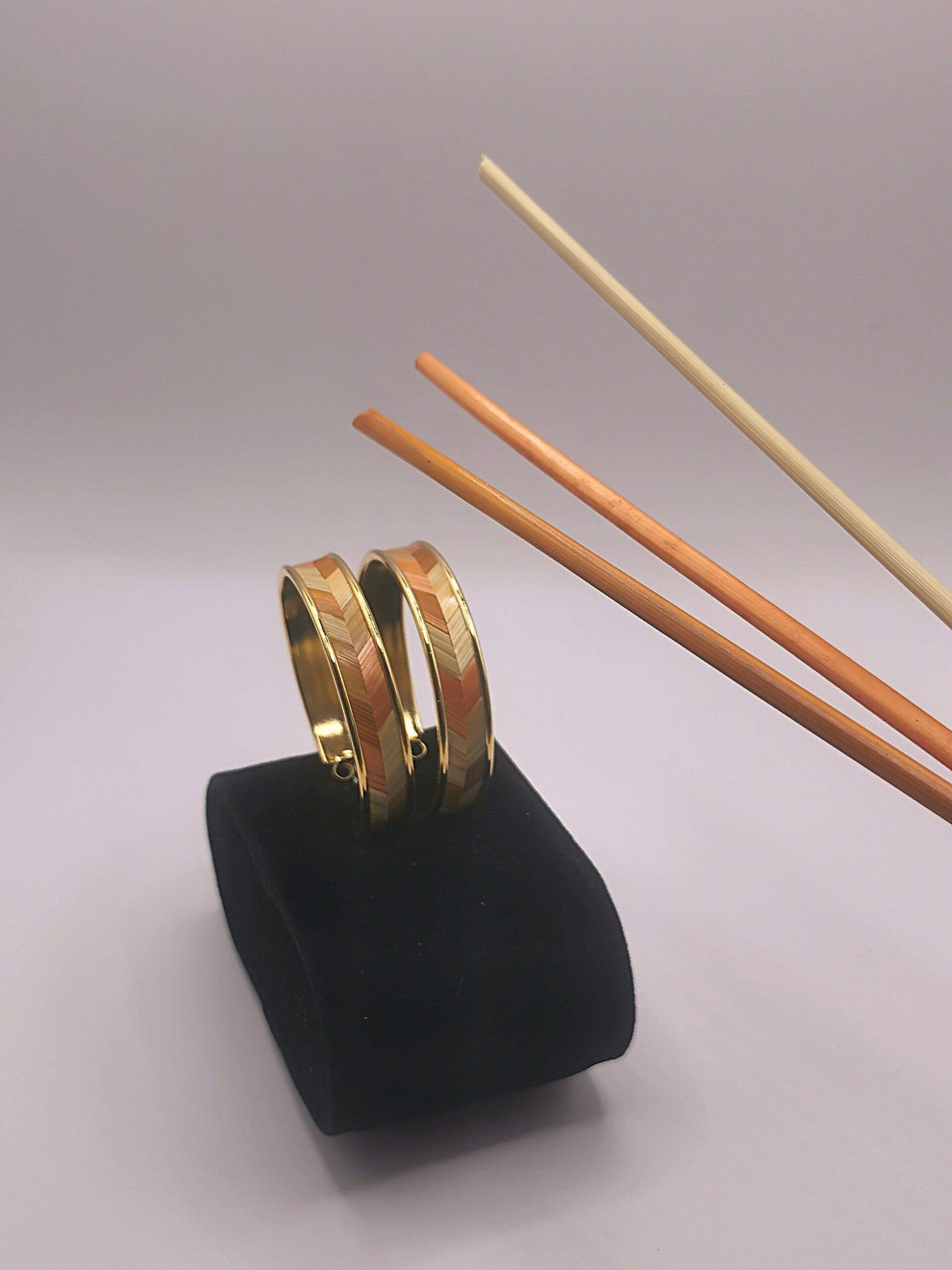 Boucles d'oreilles Laiton plaqué Or 24 carats ou plaqué Rodhium Arenté avec décor en chevron en marqueterie de paille taille unique largeur 8mm Diamètre 40mm -