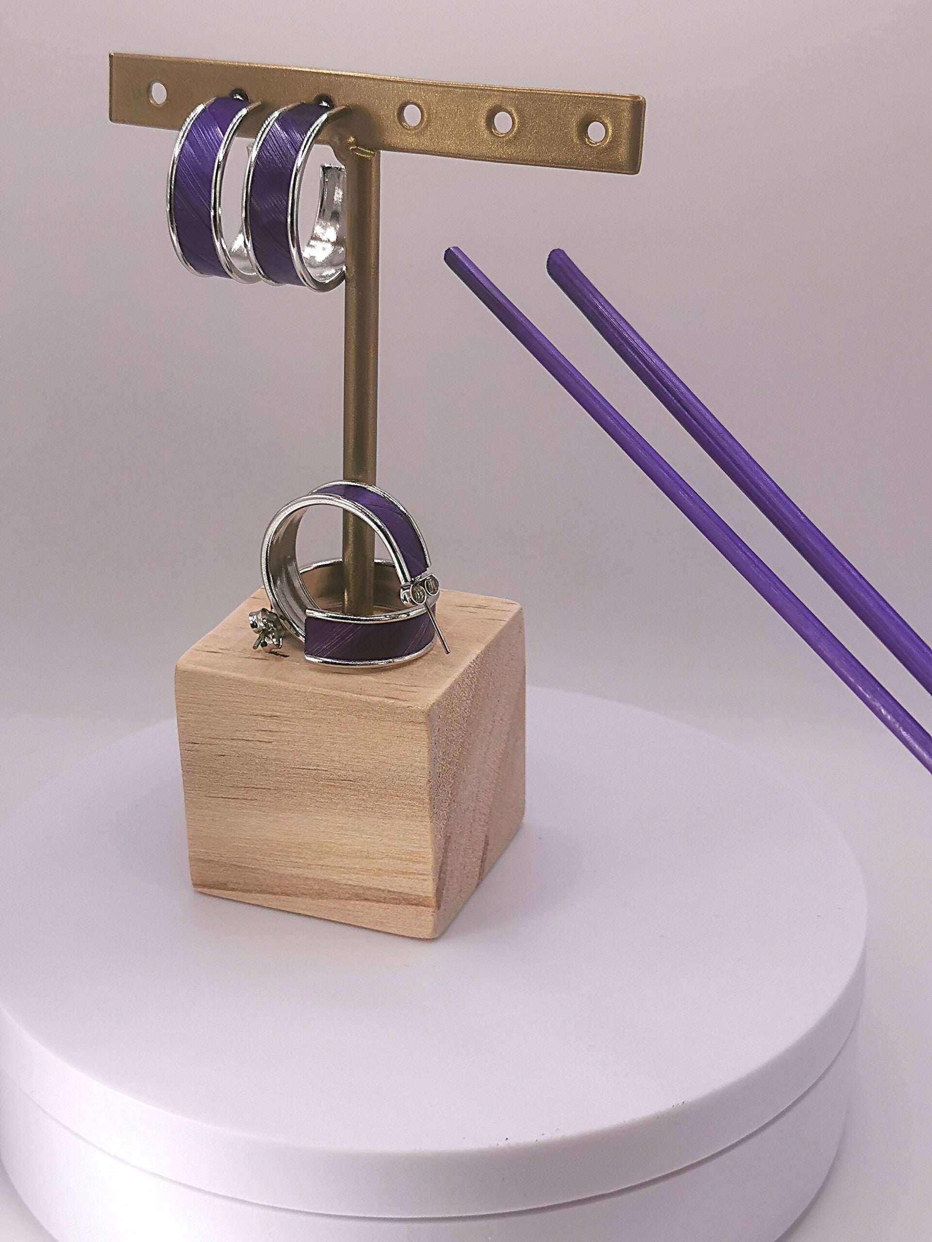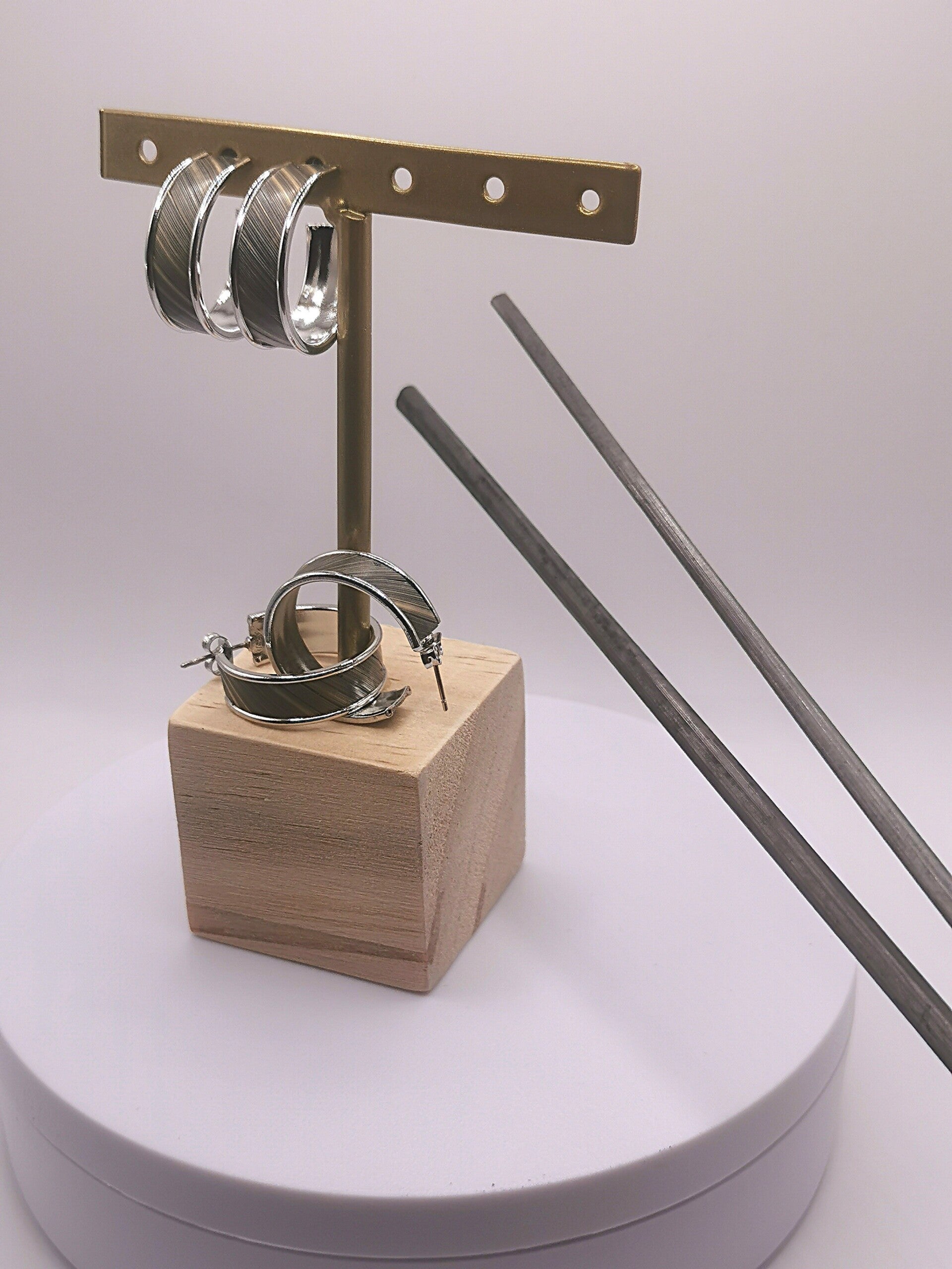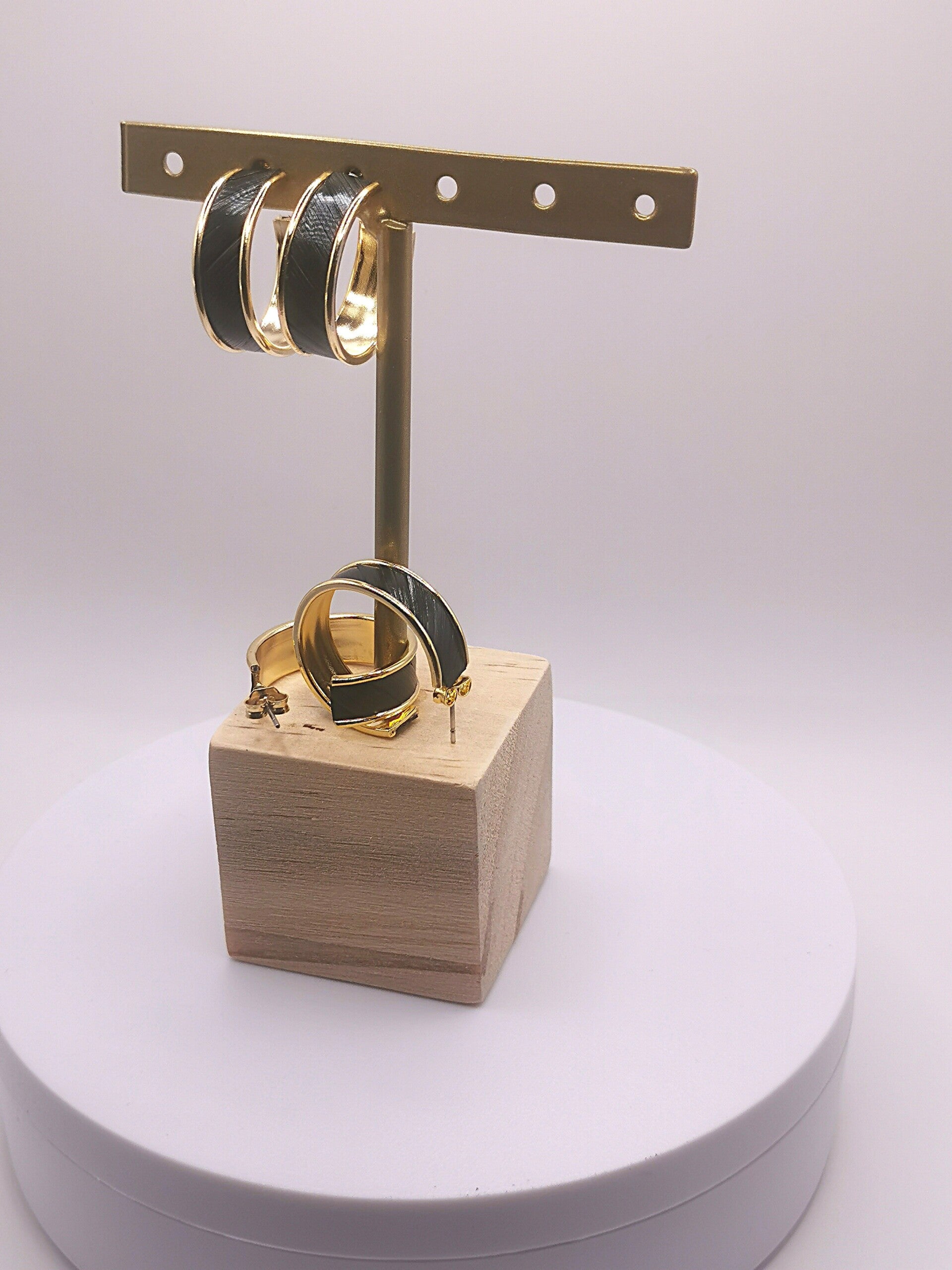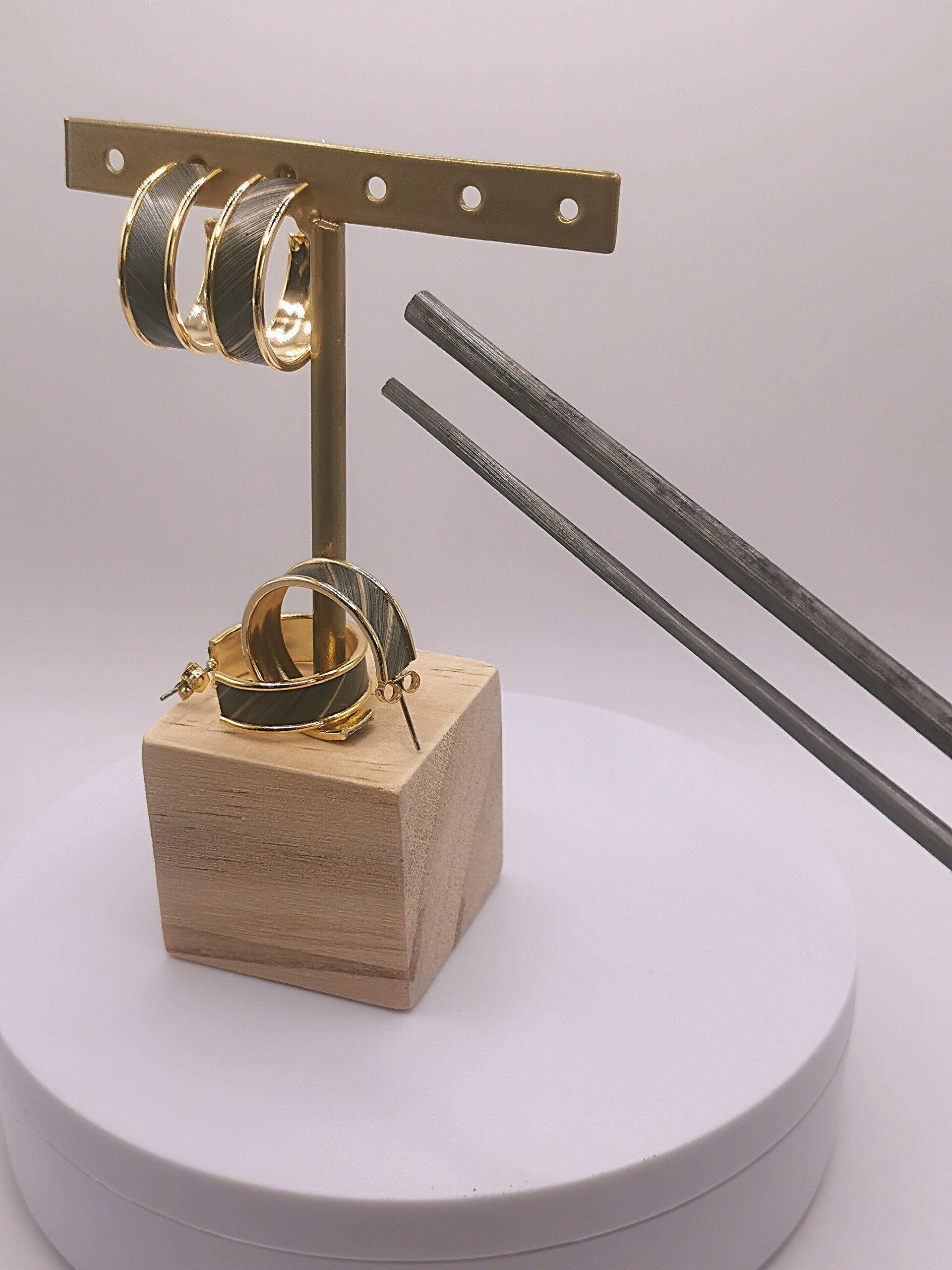 Boucles d'oreilles plaqué Or 24 carats ou plaqué Rodhium avec décor uni en marqueterie de paille taille unique largeur 8mm Diamètre 15mm.
